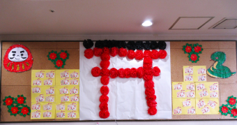 さて1月号は、職員一同で作成した「はるか神社」の紹介となります。入所者さんからは「外に出れないから嬉しい」「お参りしたい」などと大変喜んでいただける企画となりました♪