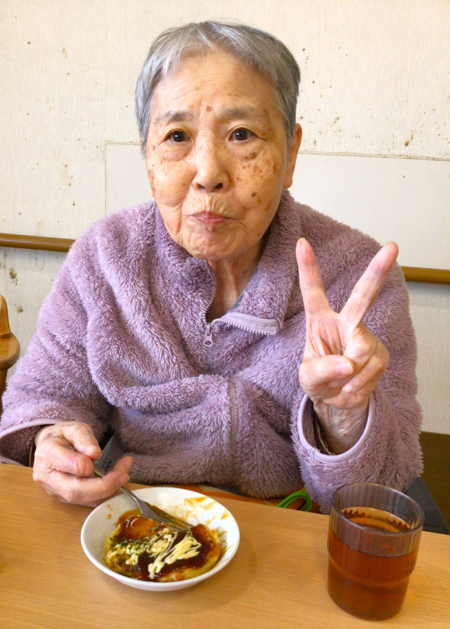 おやつレクでは、ベビーカステラ・甘酒、お好み焼きが提供されました。久しぶりに飲む甘酒、皆さん飲み干すスピードが速く驚きました(笑)お好み焼きでは、普段、食の細い方もおかわりされており、「美味しかった~。毎日でも食べたい!」と大好評となりました♪