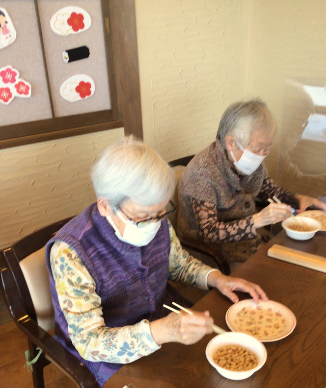 さて、2月は節分にちなんで「豆つかみゲーム」や「豆まき」イベントを開催いたしました。