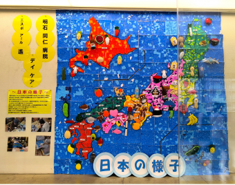 さて、8月号でお伝えしてました大型作品「日本の様子(仮)」が完成し、JR大久保駅の市民ギャラリーに展示してきました♪