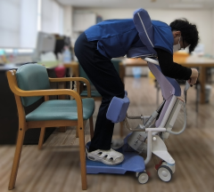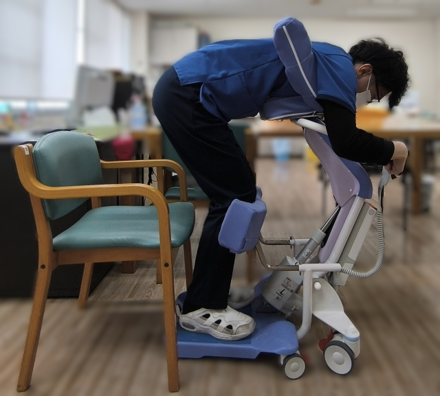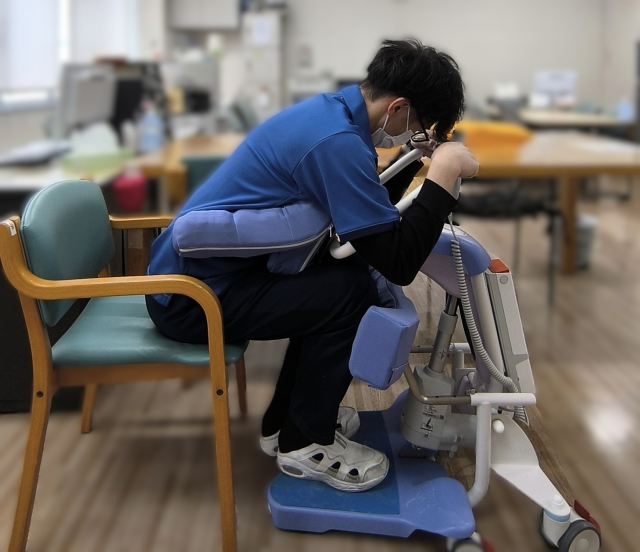 立つことが少し難しい方や立った後の姿勢保持が難しい方は今まで職員が抱えていましたが、Hugを導入したことにより利用者さんも安全・安楽に立つことができ、職員の腰痛予防対策としても効果的で、利用者様・職員ともにより安全な介助ができる環境が整いました♪